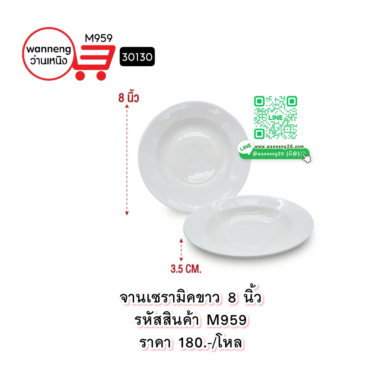 M959 จานเซรามิคขาว 8 นิ้ว 30130 1 โหล