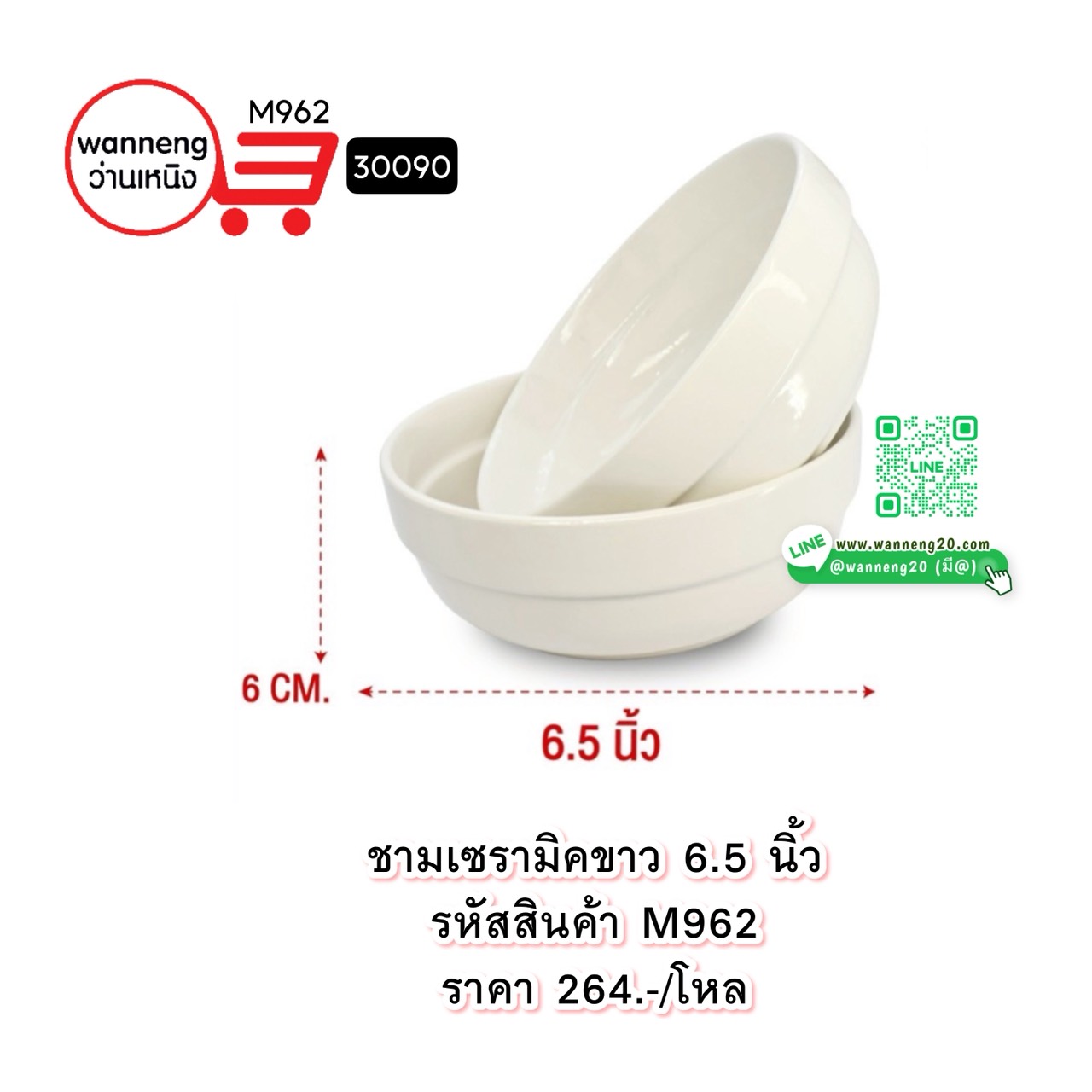 M962 ชามเซรามิคขาว 6.5 นิ้ว 30090 1 โหล