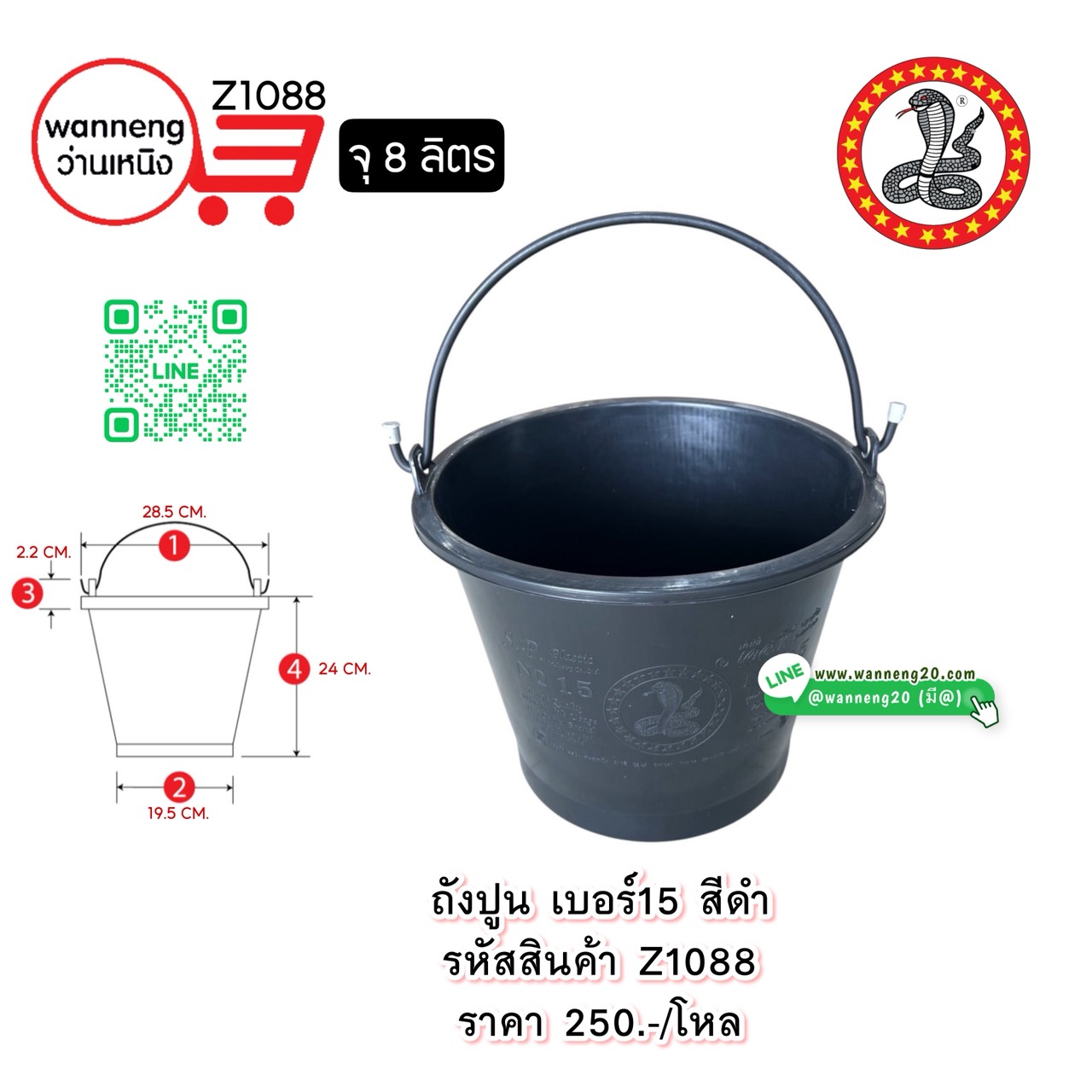 Z1088 ถังปูน เบอร์15 สีดำ (ตรางู) 1 โหล