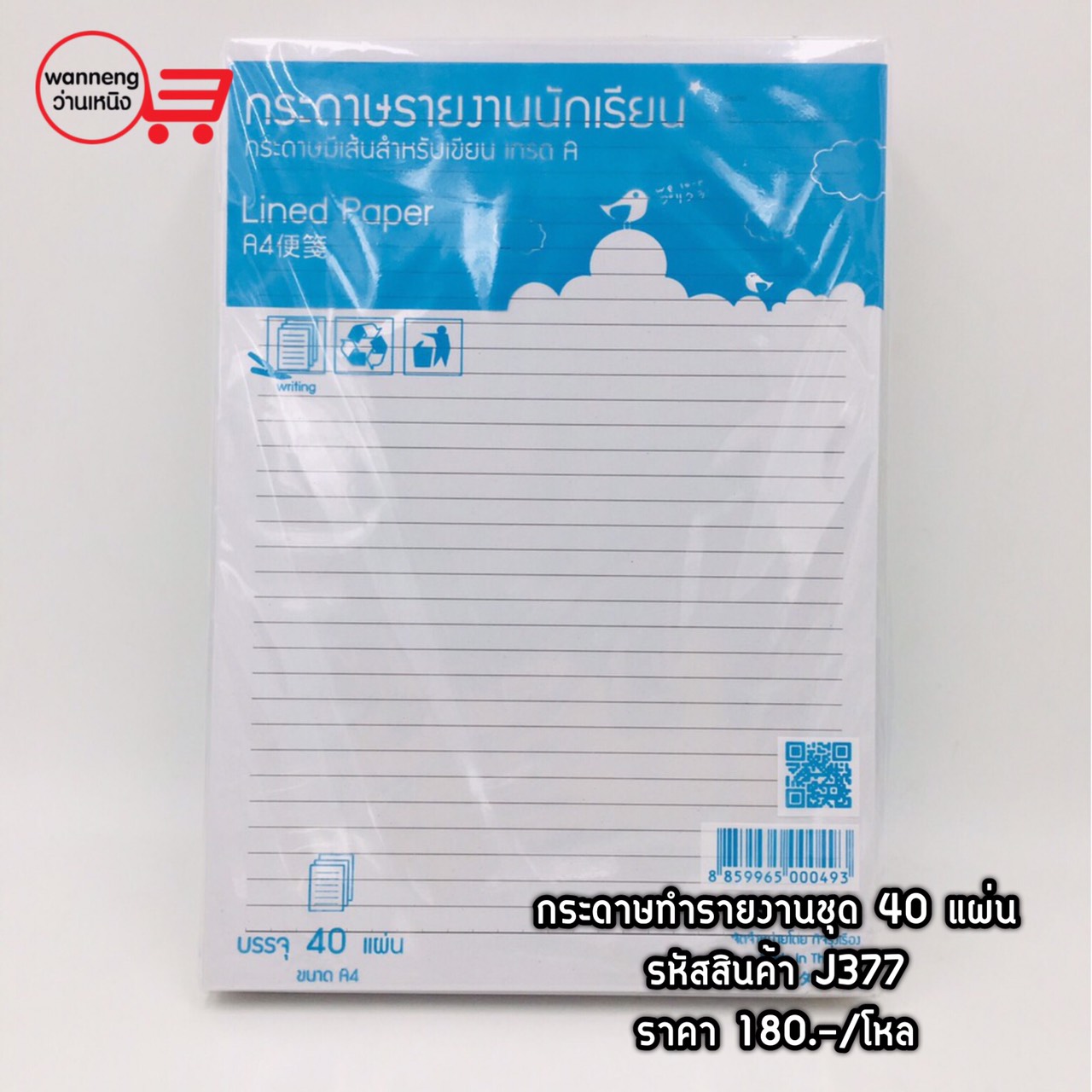 J377 กระดาษทำรายงานชุด 40 แผ่น 1 โหล