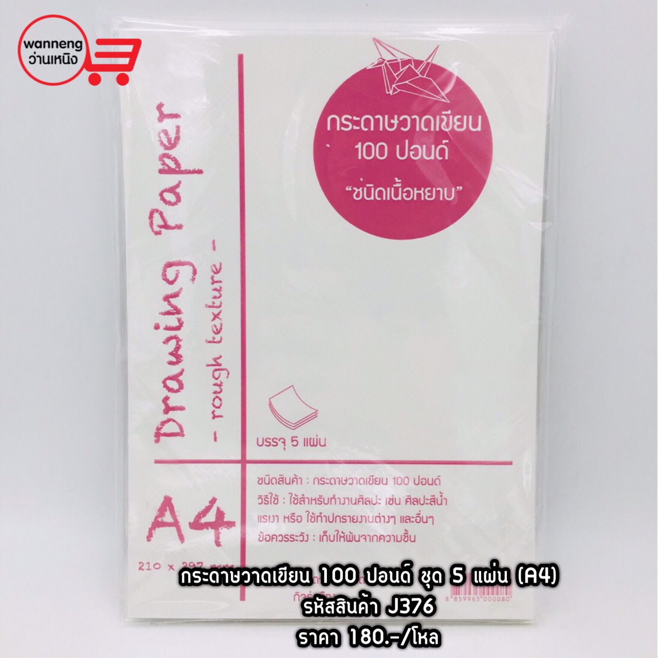 J376 กระดาษวาดเขียน 100 ปอนด์ ชุด 5 แผ่น (A4) 1 โหล