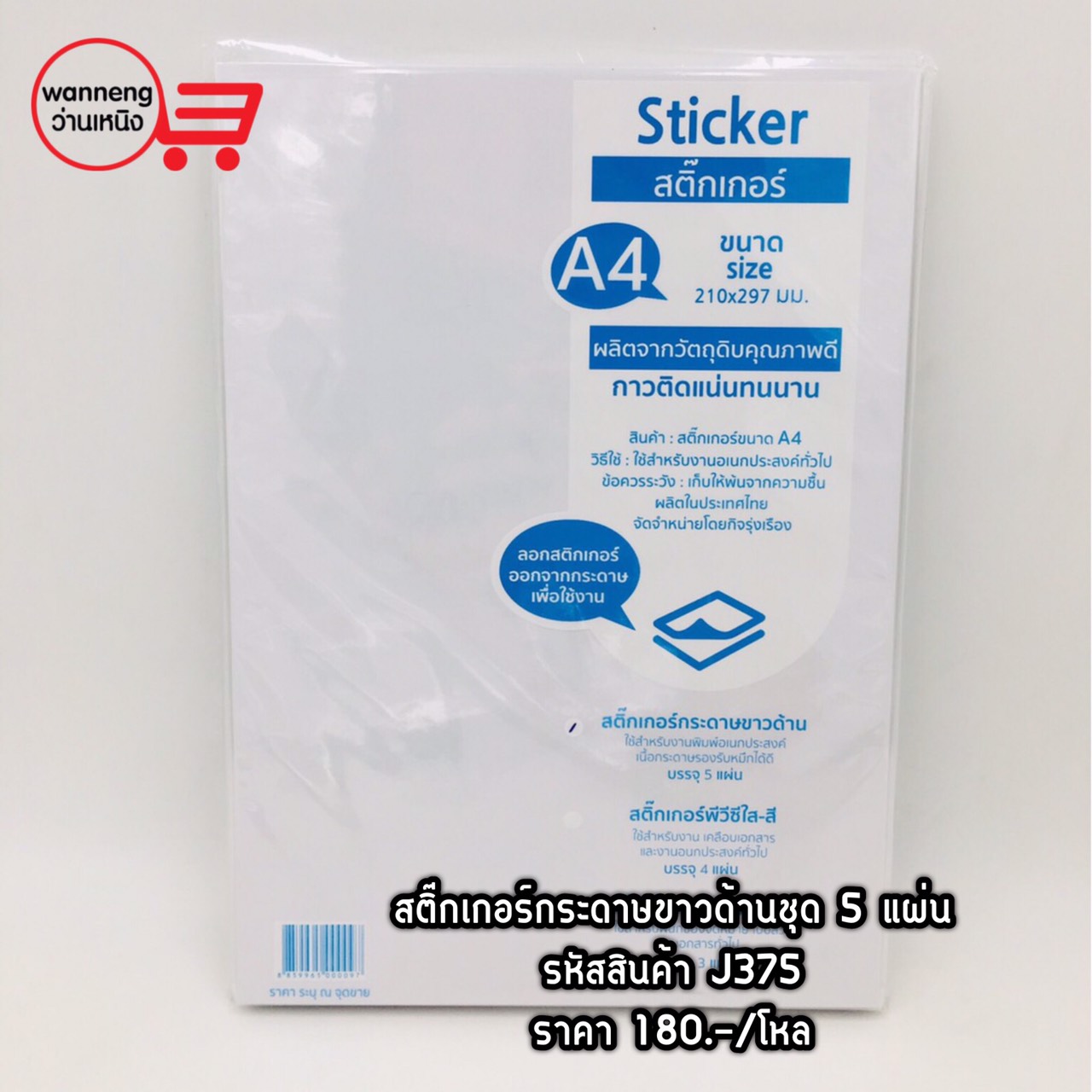 J375 สติ๊กเกอร์กระดาษขาวด้านชุด 5 แผ่น 1 โหล