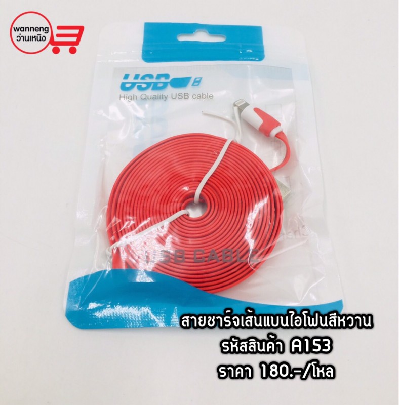 A153 สายชาร์จเส้นแบนไอโฟนสีหวาน 1 โหล