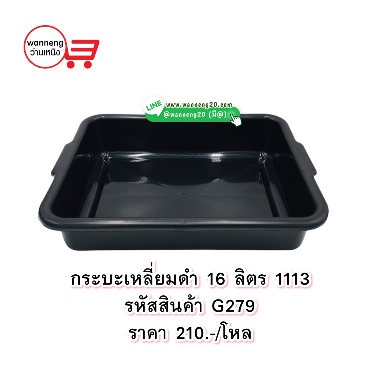 G279 กระบะเหลี่ยมดำ 16 ลิตร 38x52x12 ซม. 1 โหล