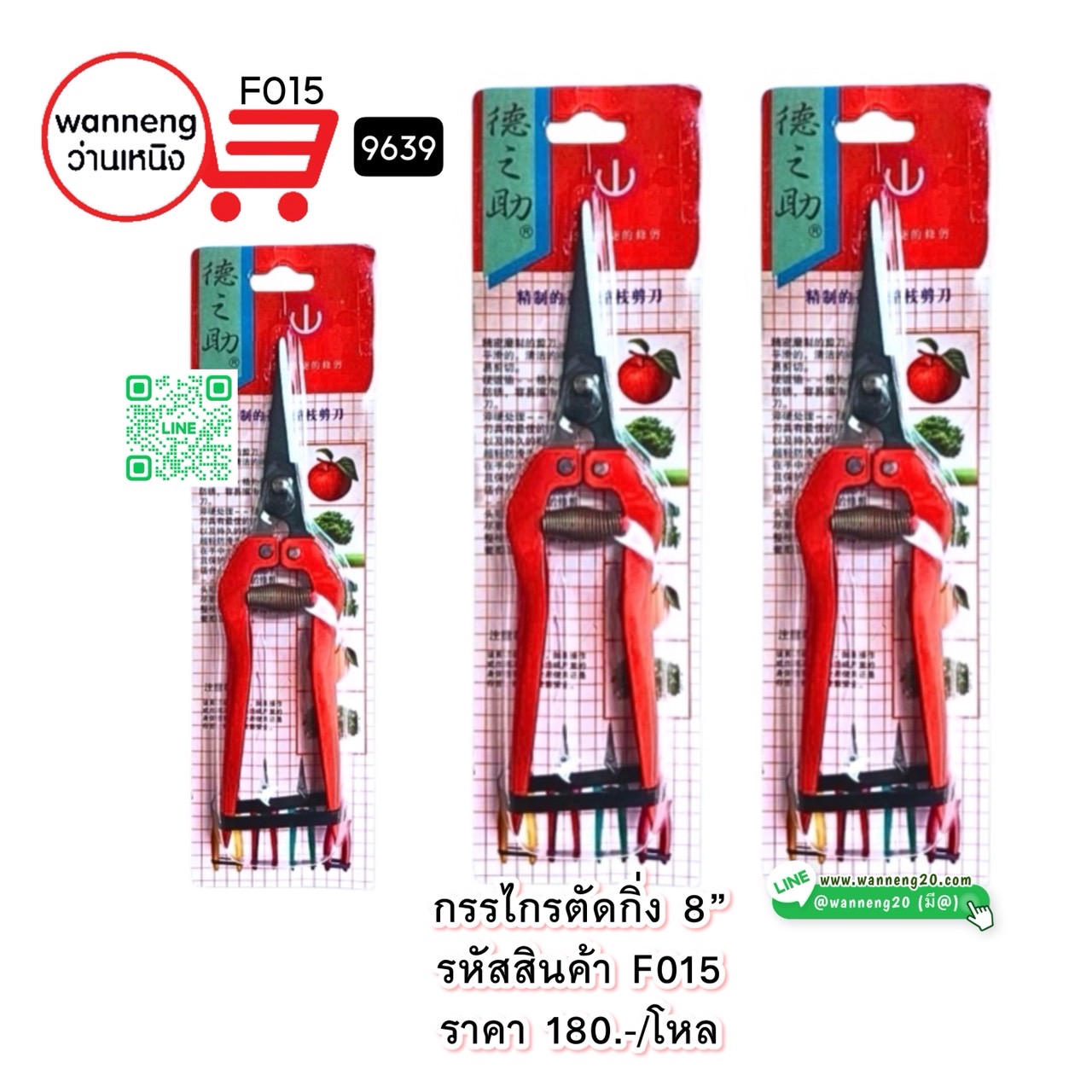 F015 กรรไกรตัดกิ่ง 8 นิ้ว 9639 1 โหล
