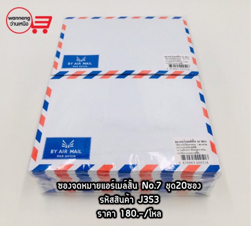 J353 ซองจดหมายแอร์เมล์สั้น No.7 ชุด 20 ซอง 1 โหล