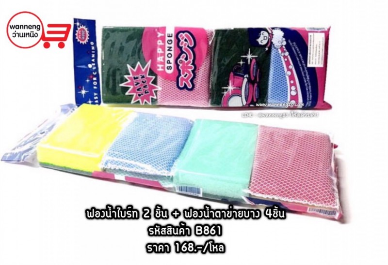 B861 ฟองน้ำไบร์ท 2 ชิ้น +ฟองน้ำตาข่าย 4 ชิ้น 1 โหล
