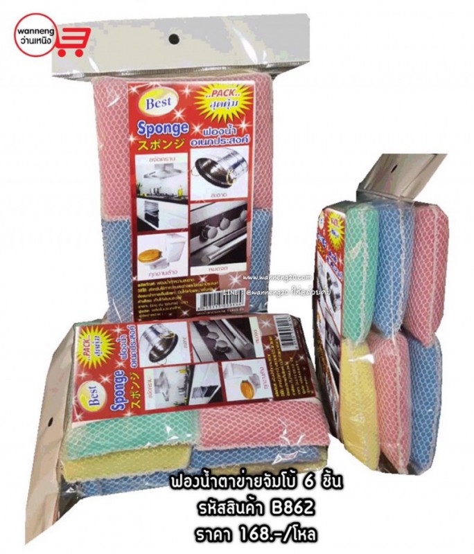 B862 ฟองน้ำตาข่ายจัมโบ้ 6 ชิ้น 1 โหล