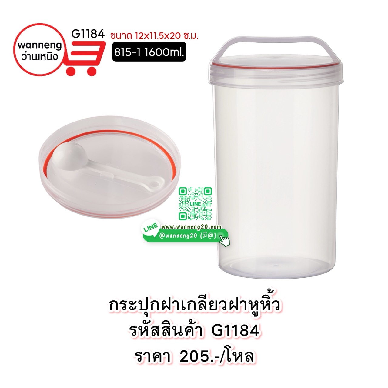 G1184 กระปุกฝาเกลียวฝาหูหิ้ว 815-1 1600ml. 1 โหล