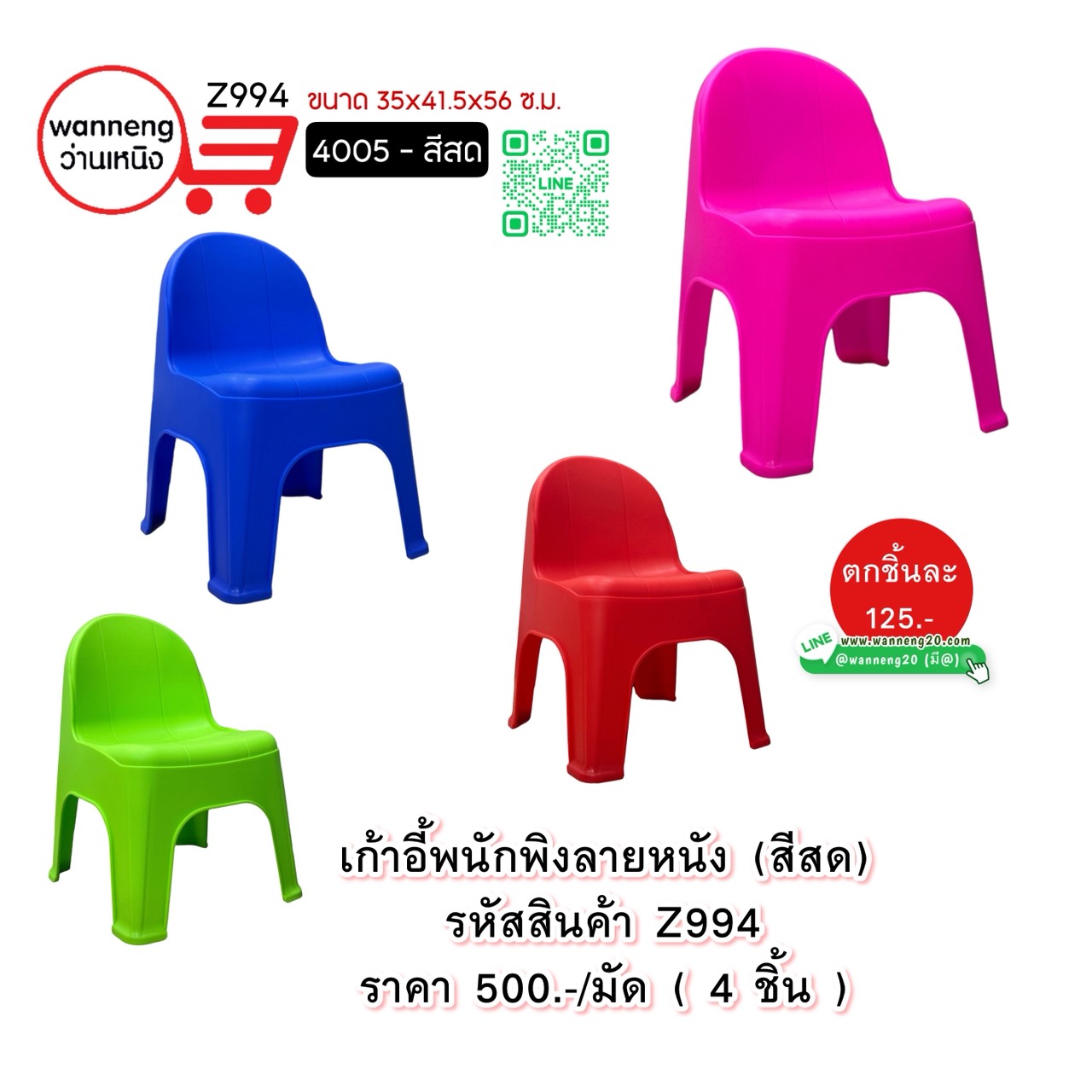 Z994 เก้าอี้พนักพิงลายหนัง สีสด 4005 1 มัด 4 ชิ้น
