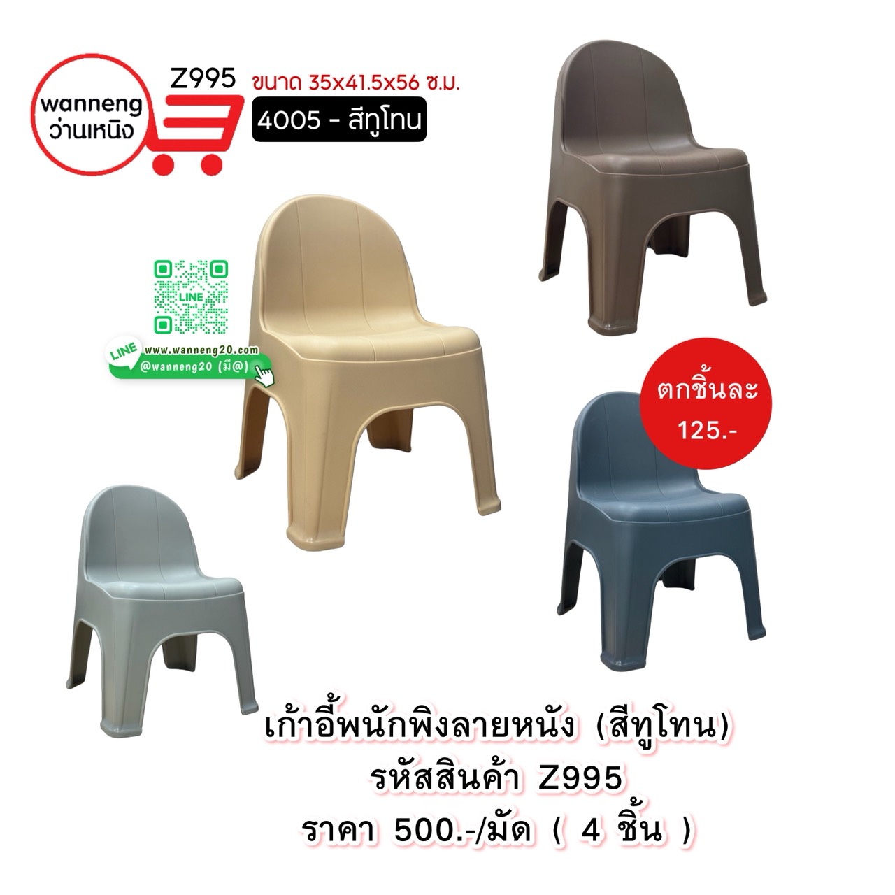 Z995 เก้าอี้พนักพิงลายหนัง สีทูโทน 4005 1 มัด 4 ชิ้น