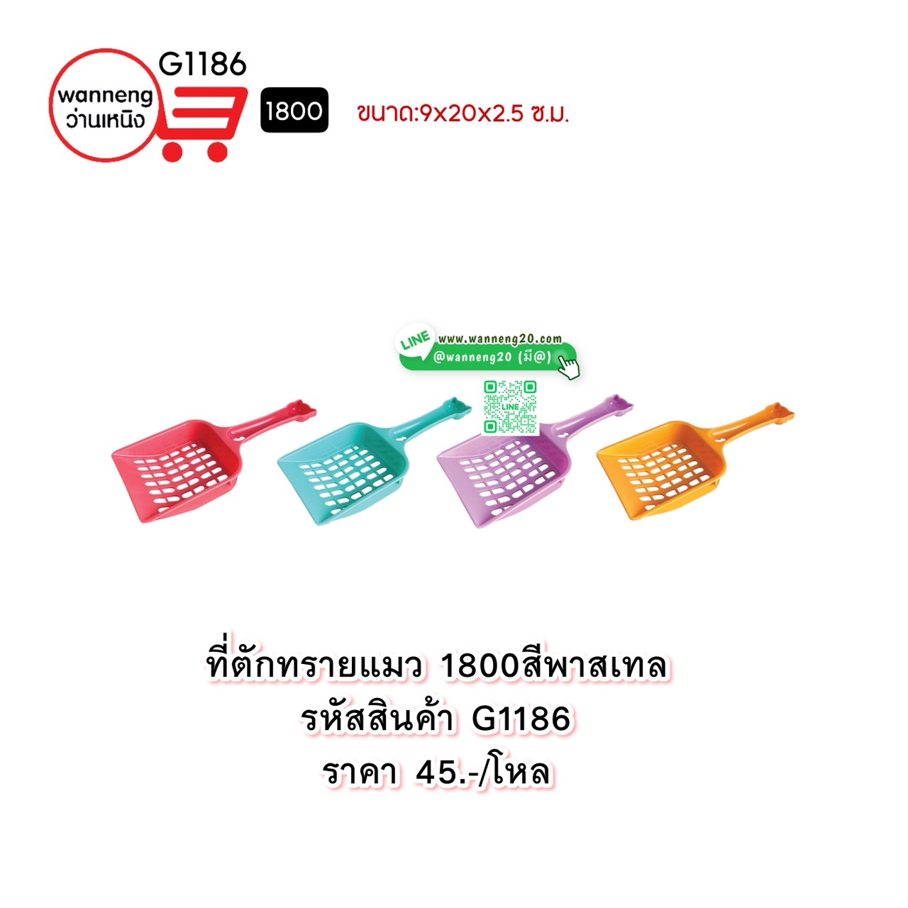 G1186 ที่ตักทรายแมว 1800 สีพาสเทล 1 โหล