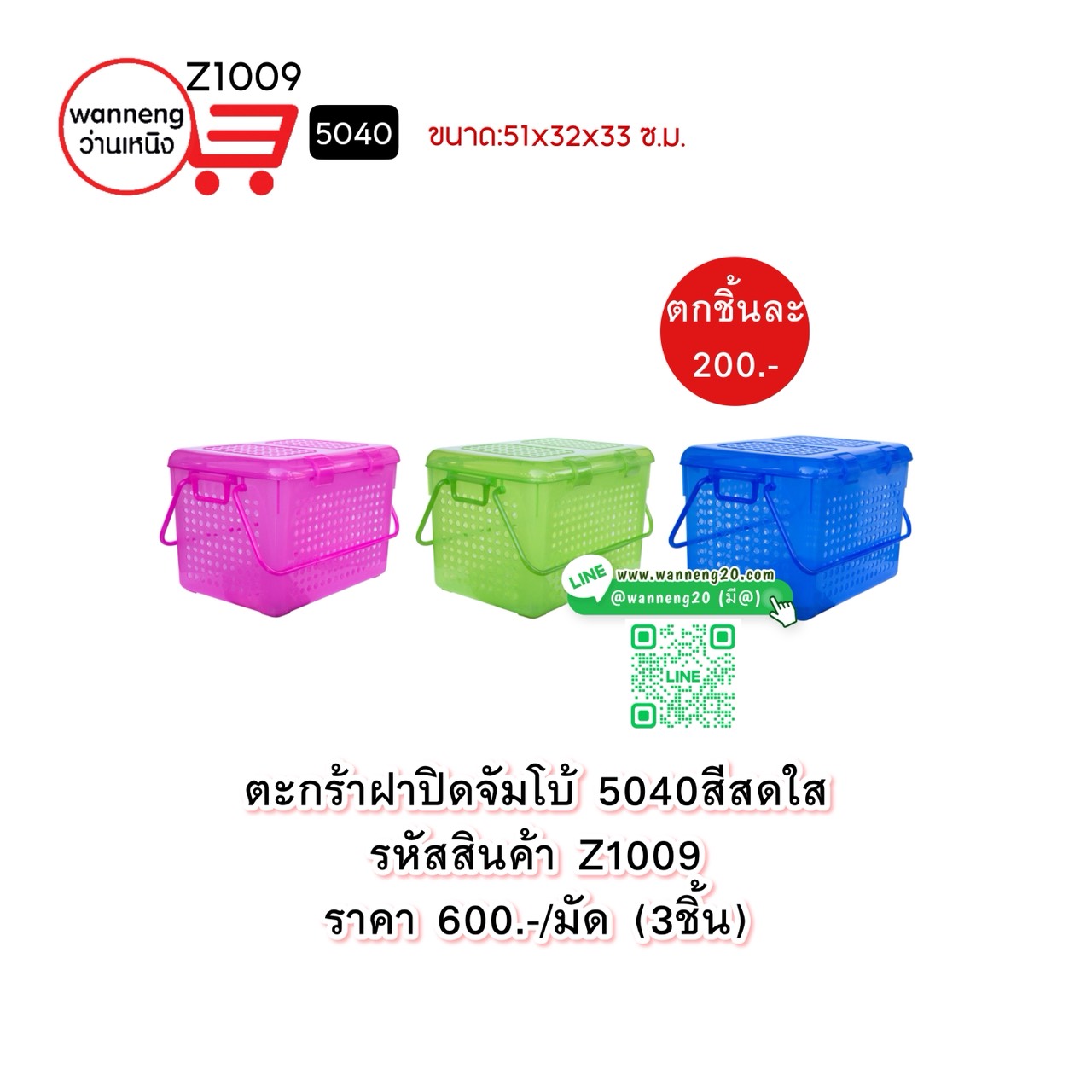 Z1009 ตะกร้าฝาปิดจัมโบ้ 5040 สีสดใส 1 มัด 3 ชิ้น