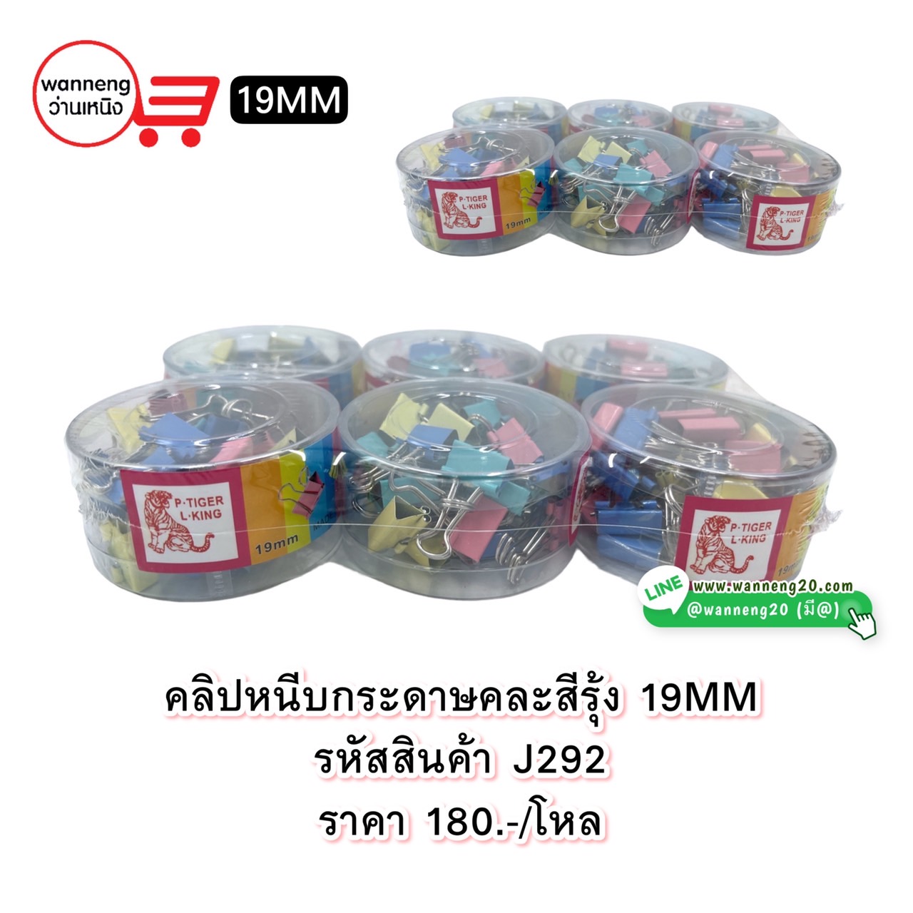 J292 คลิปหนีบกระดาษคละสี19mm. 1 โหล