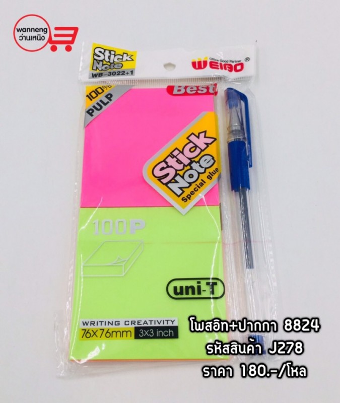 J278 โพสอิท+ปากกา 8824 1 โหล