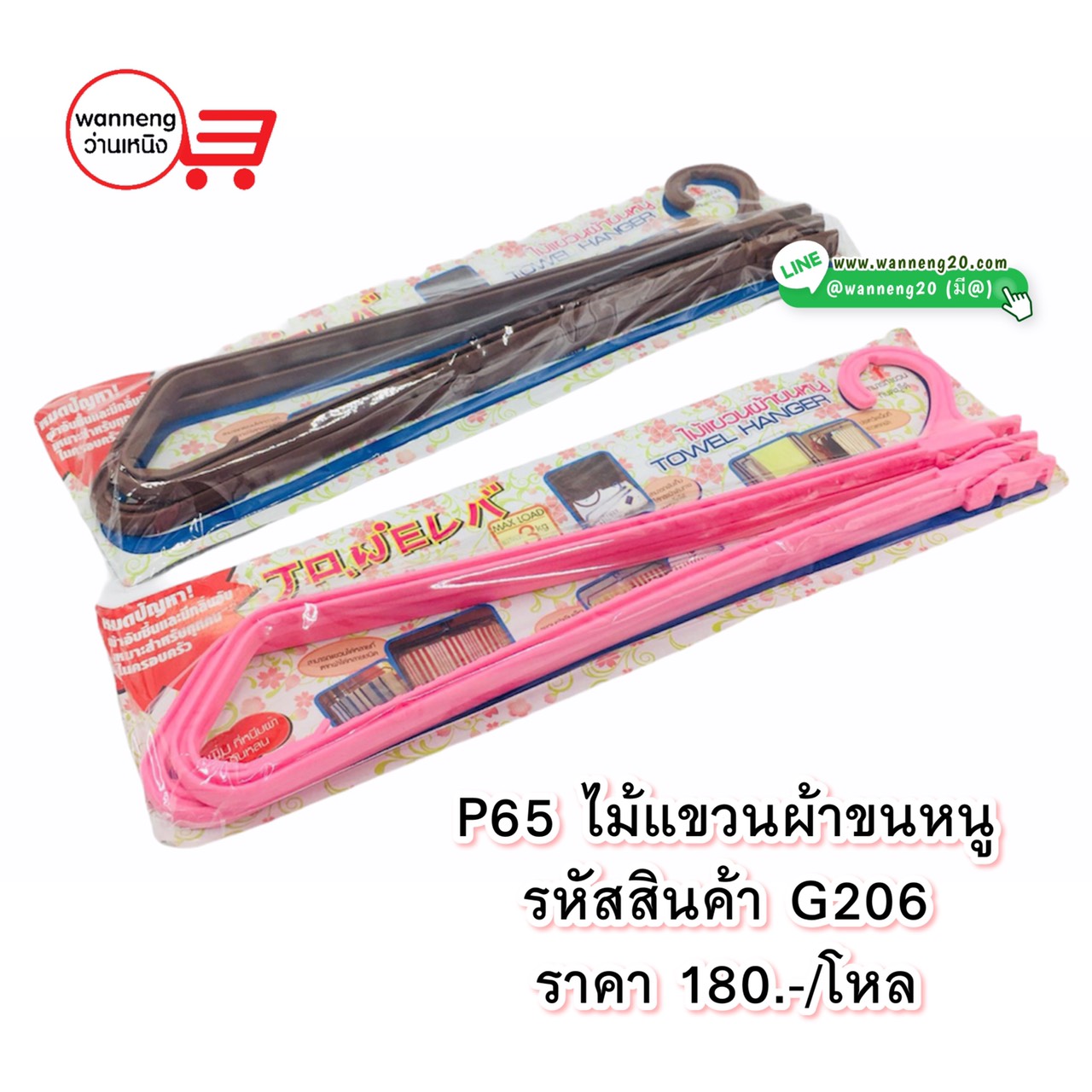 G206 P65 ไม้แขวนผ้าขนหนู 1 โหล