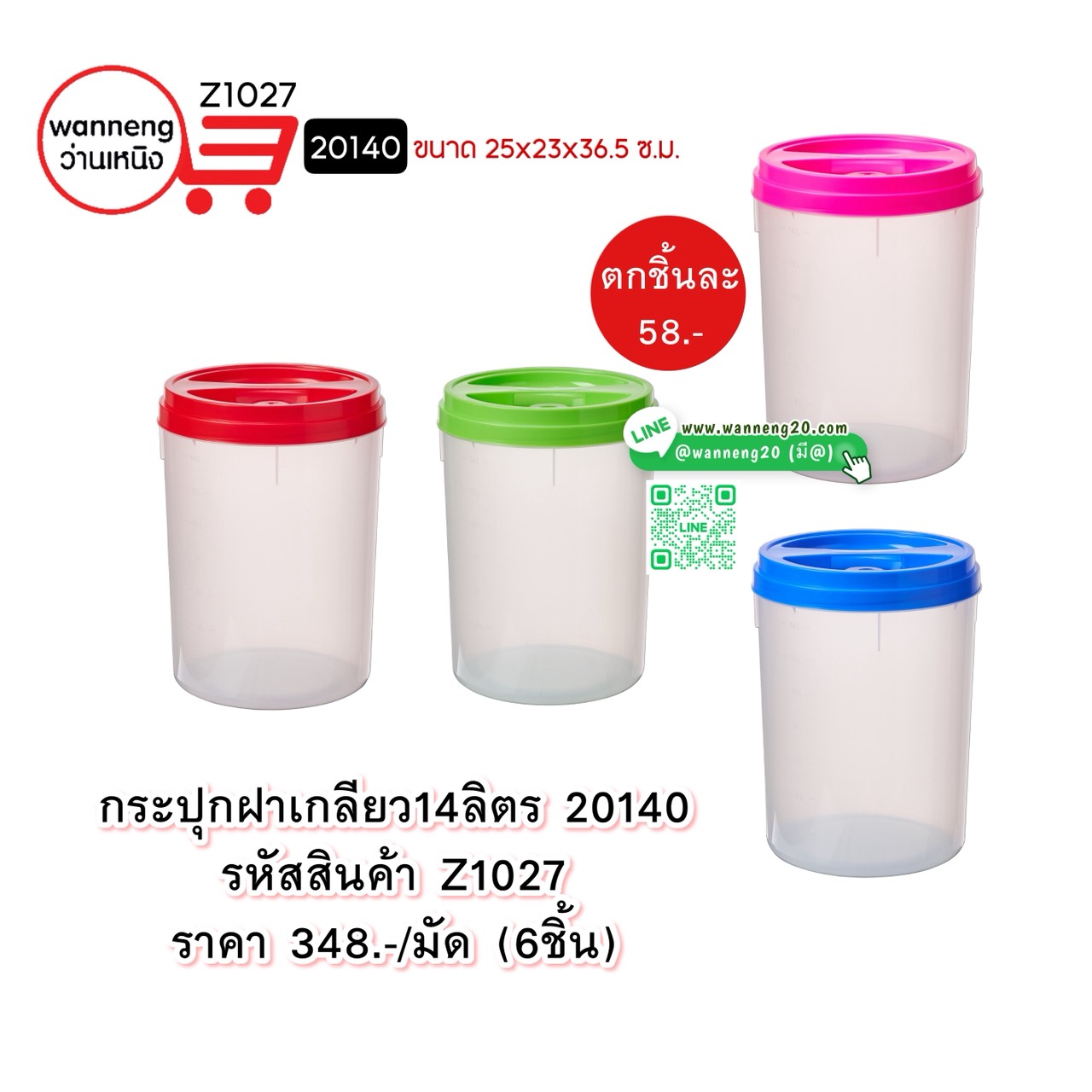 Z1027 กระปุกฝาเกลียว 14 ลิตร 20140 1 มัด 6 ชิ้น