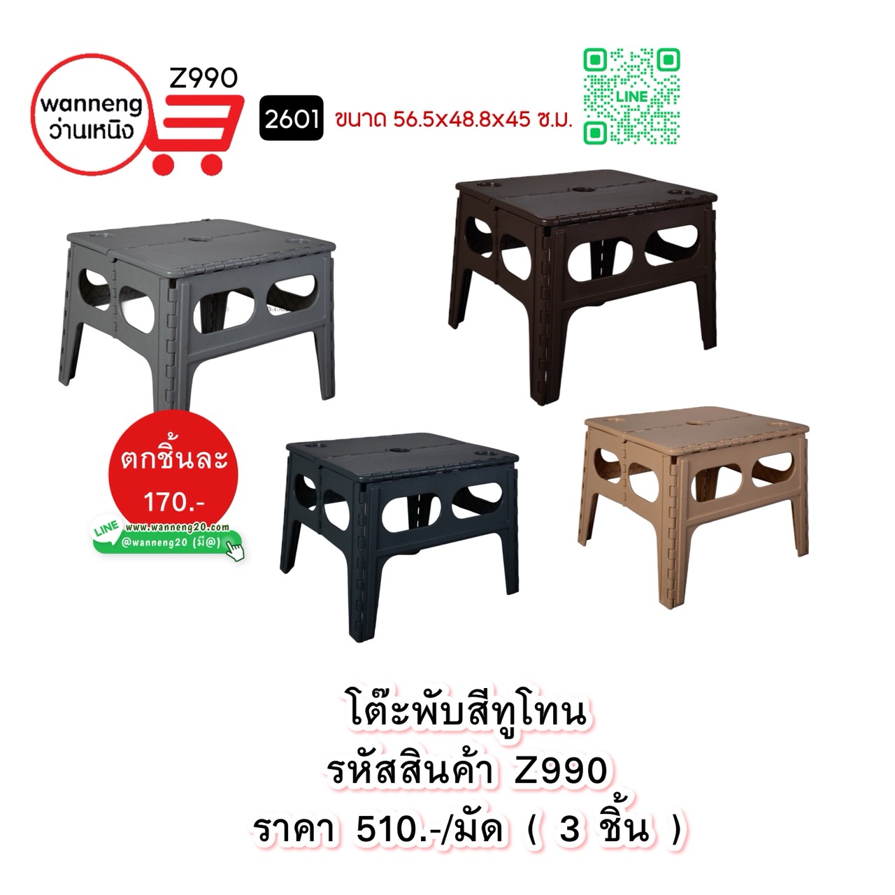 Z990 โต๊ะพับสีทูโทน 2601 1 มัด 3 ชิ้น