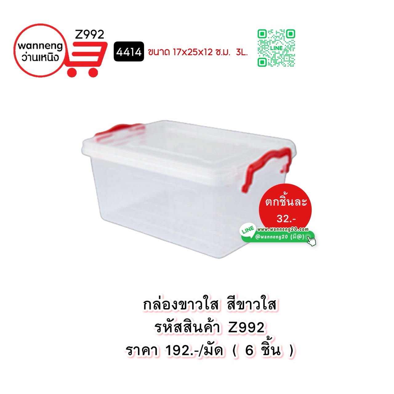 Z992 กล่องแช่ 4414 สีขาวใส 1 มัด 6 ชิ้น