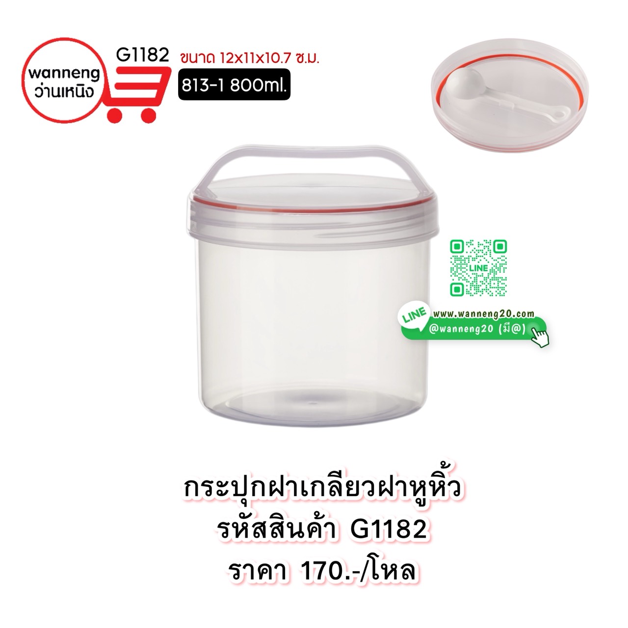 G1182 กระปุกฝาเกลียวฝาหูหิ้ว 813-1 800ml. 1 โหล
