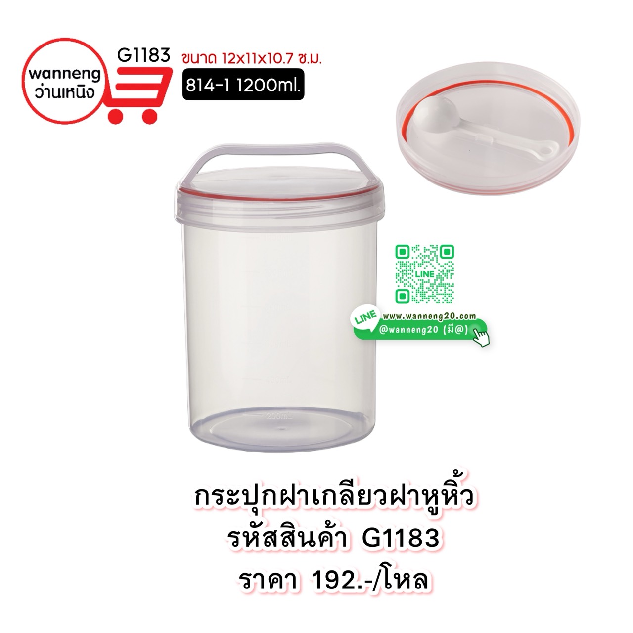G1183 กระปุกฝาเกลียวฝาหูหิ้ว 814-1 1200ml. 1 โหล