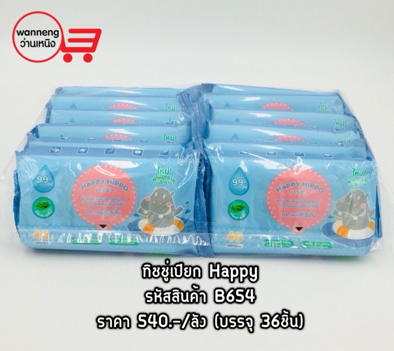 B654 ทิชชู่เปียกHappy 1ลัง บรรจุ 36 ชิ้น