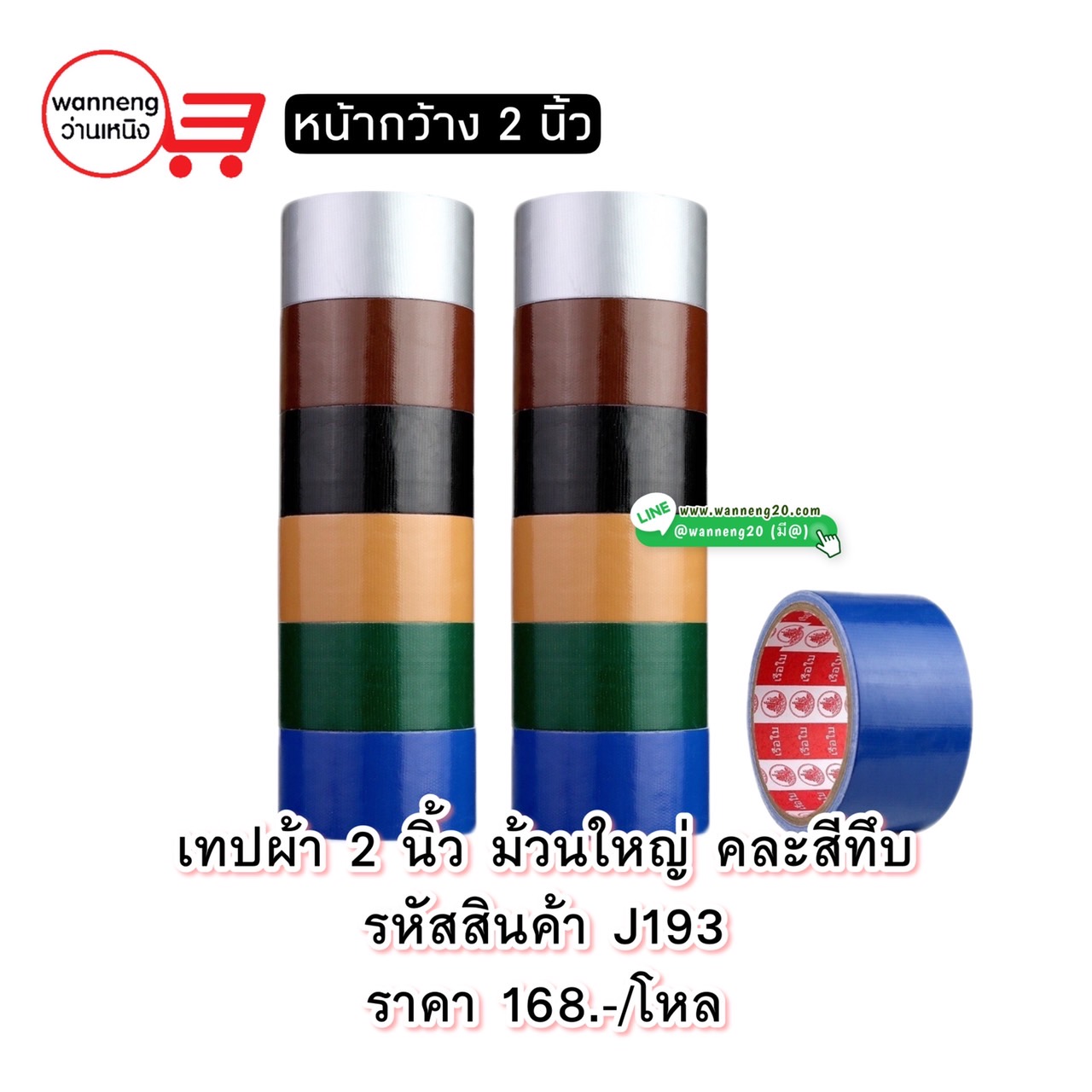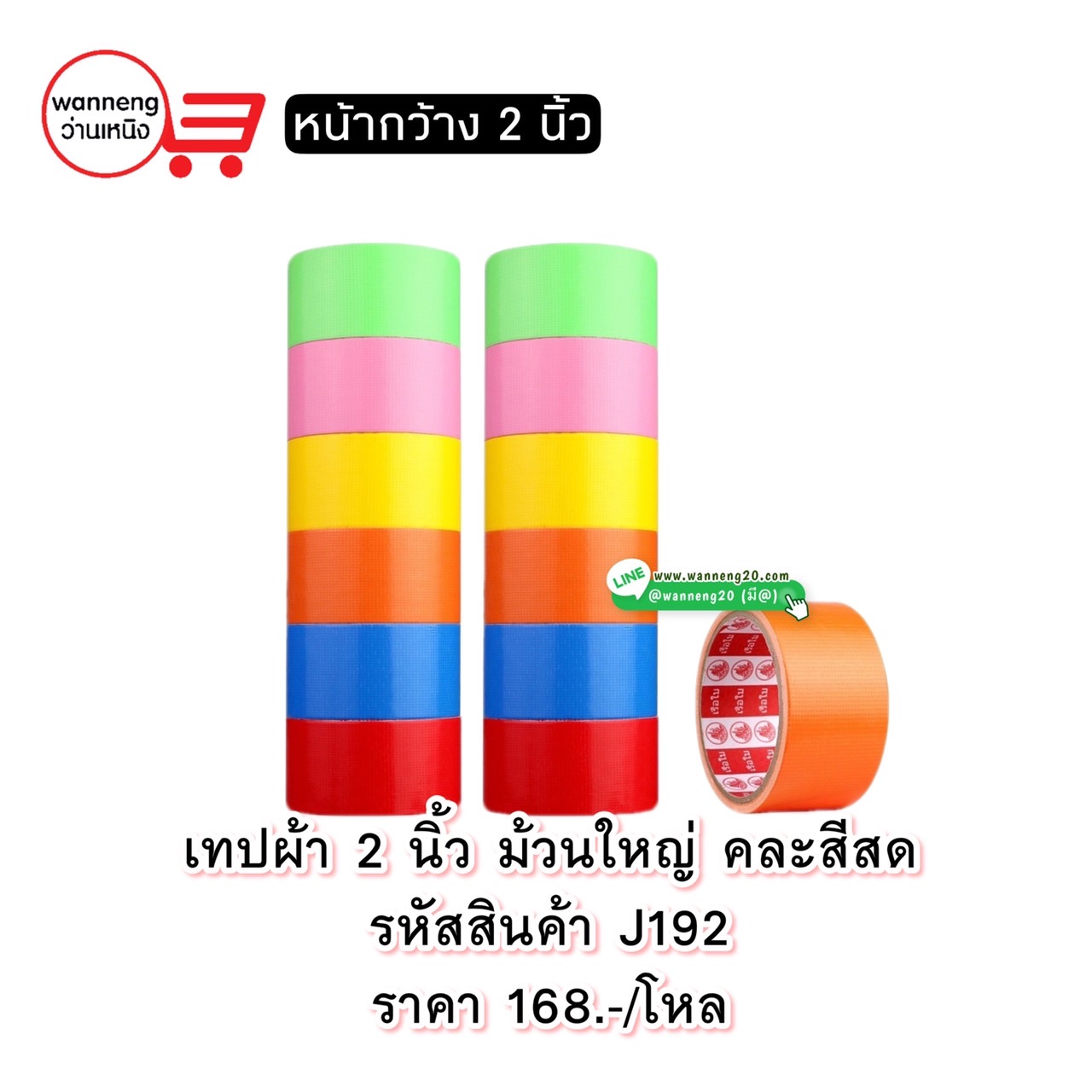 J192 เทปผ้า2นิ้ว ม้วนใหญ่ คละสีสด 1 โหล