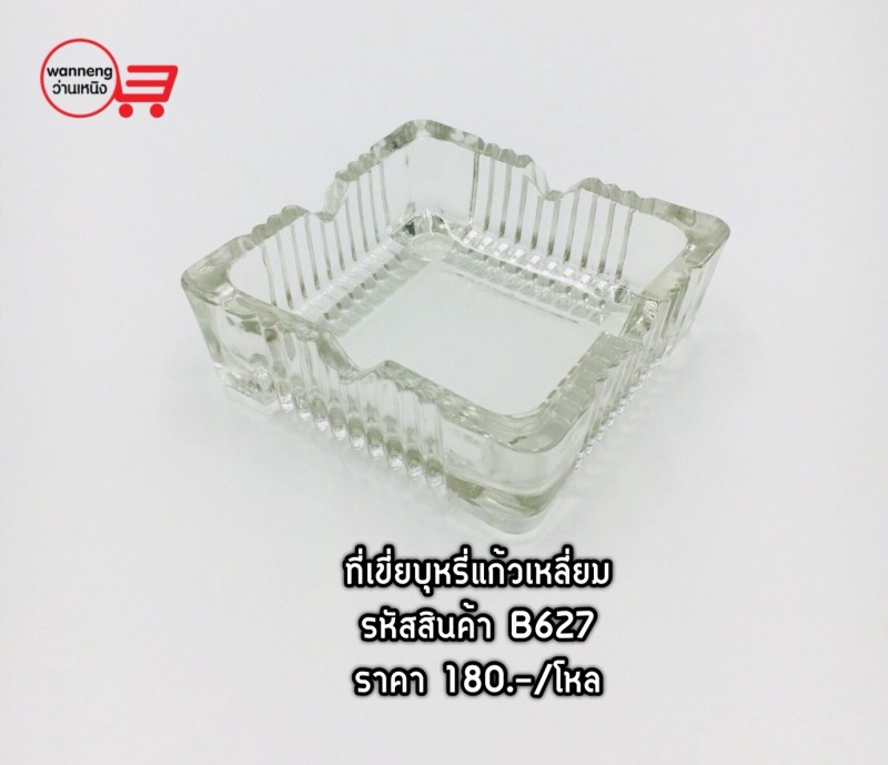 B627 ที่เขี่ยบุหรี่ แก้วเหลี่ยม 1 โหล