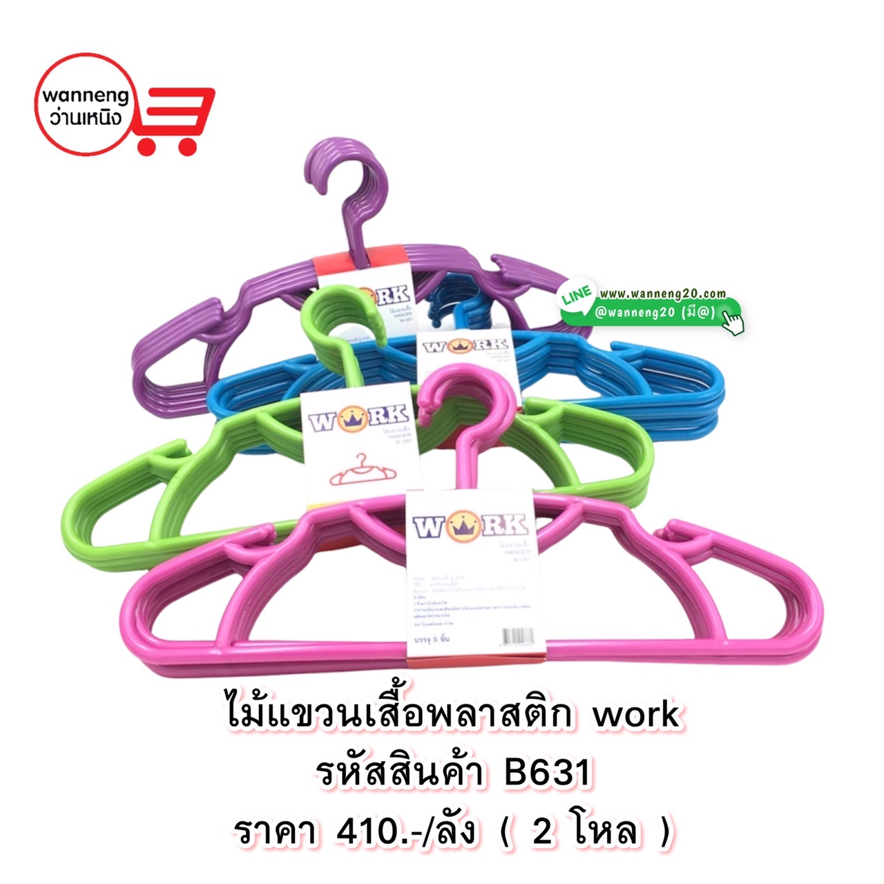 B631 ไม้แขวนเสื้อพลาสติก work 1 ลัง ( บรรจุ 2 โหล )
