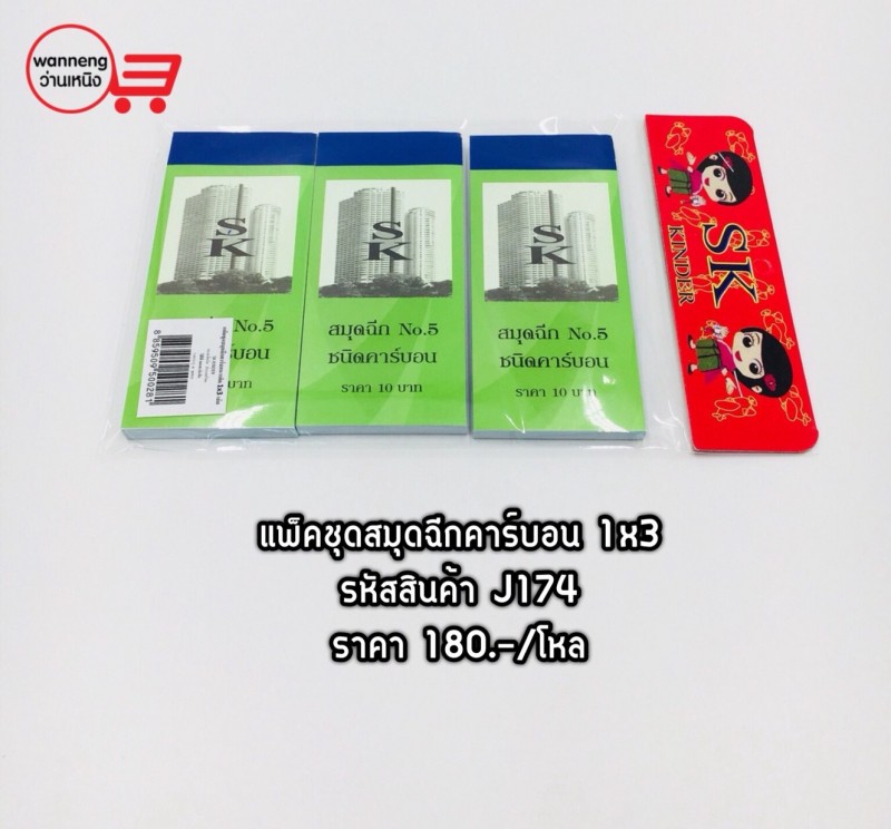J174 แพ็คชุดสมุดฉีกคาร์บอน 1x3 1 โหล