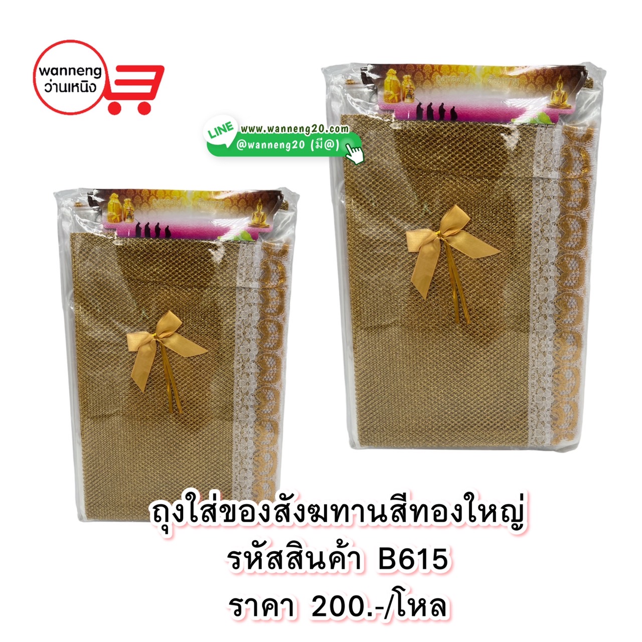 B615 ถุงใส่ของสังฆทานสีทองใหญ่ 1 โหล