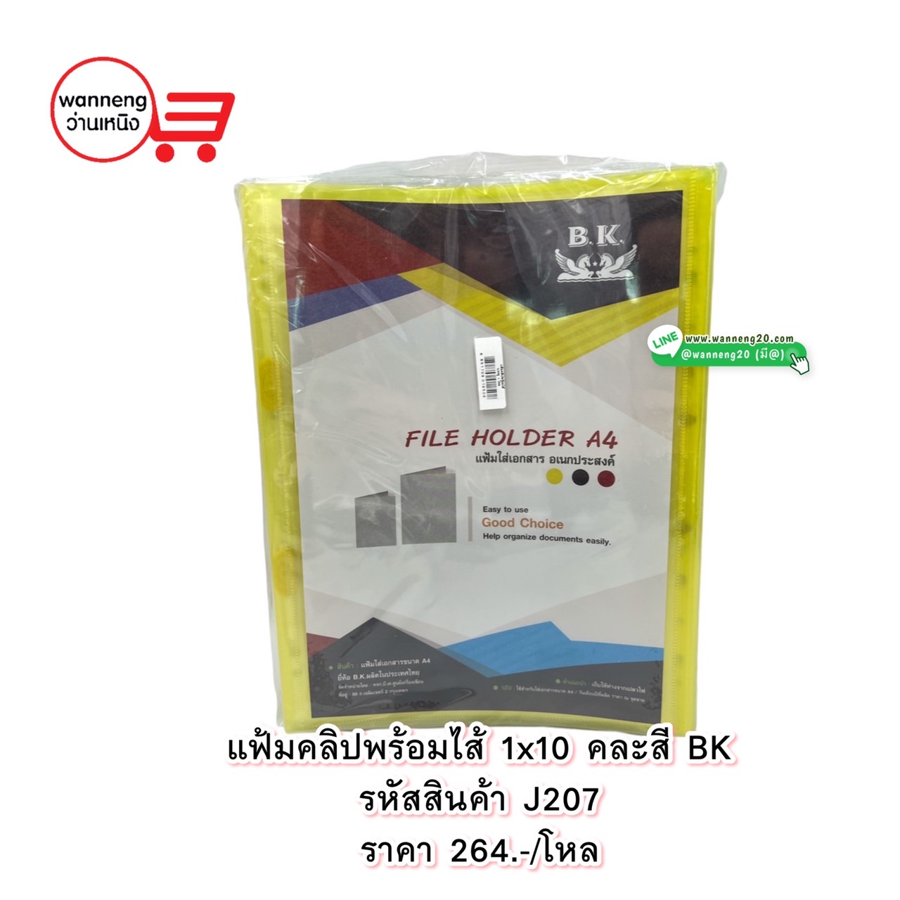 J207 แฟ้มคลิปพร้อมไส้ 1x10 คละสี BK 1 โหล
