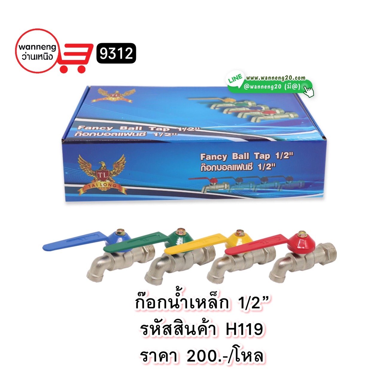 H119 ก๊อกน้ำเหล็ก 1/2" 9312 1 โหล