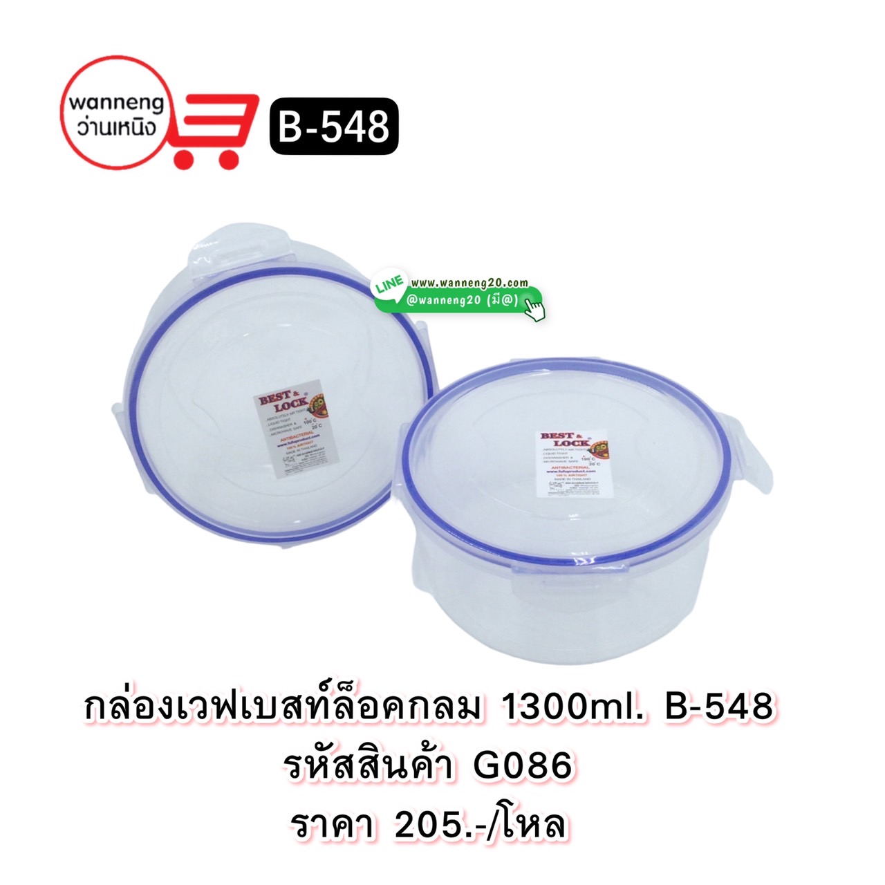G086 กล่องเวฟเบสท์ล็อคกลม 1300ml. B-548 1 โหล