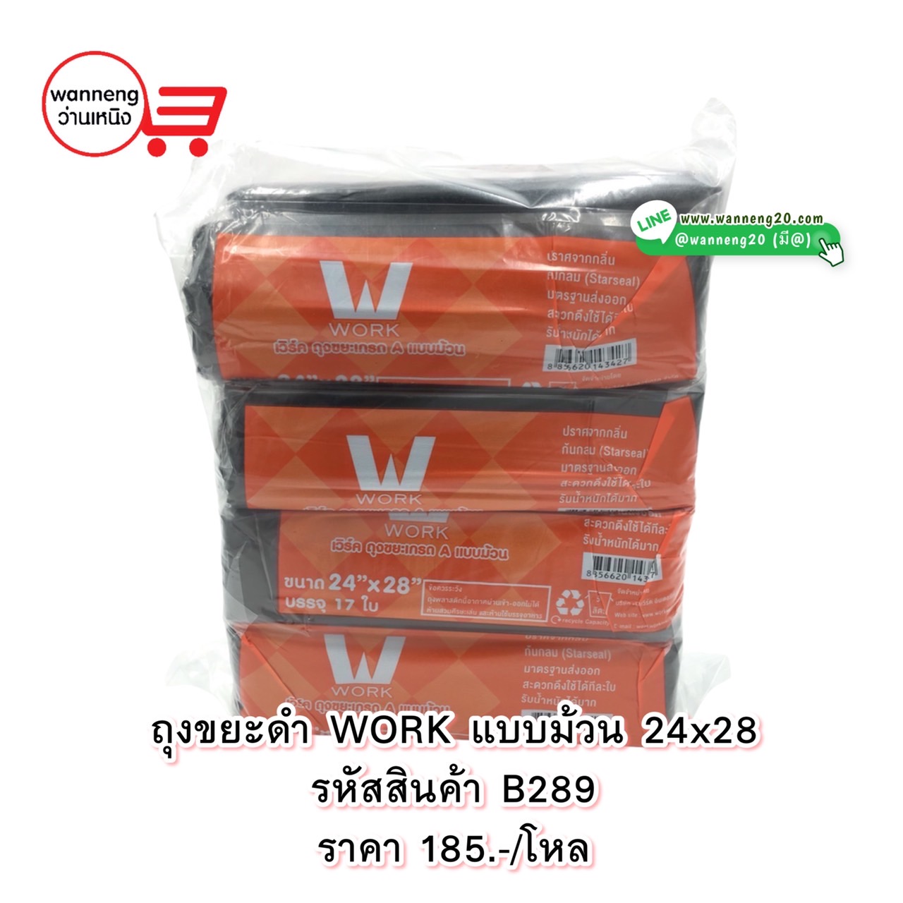 B289 ถุงขยะดำWORK แบบม้วน 24x28 1 โหล