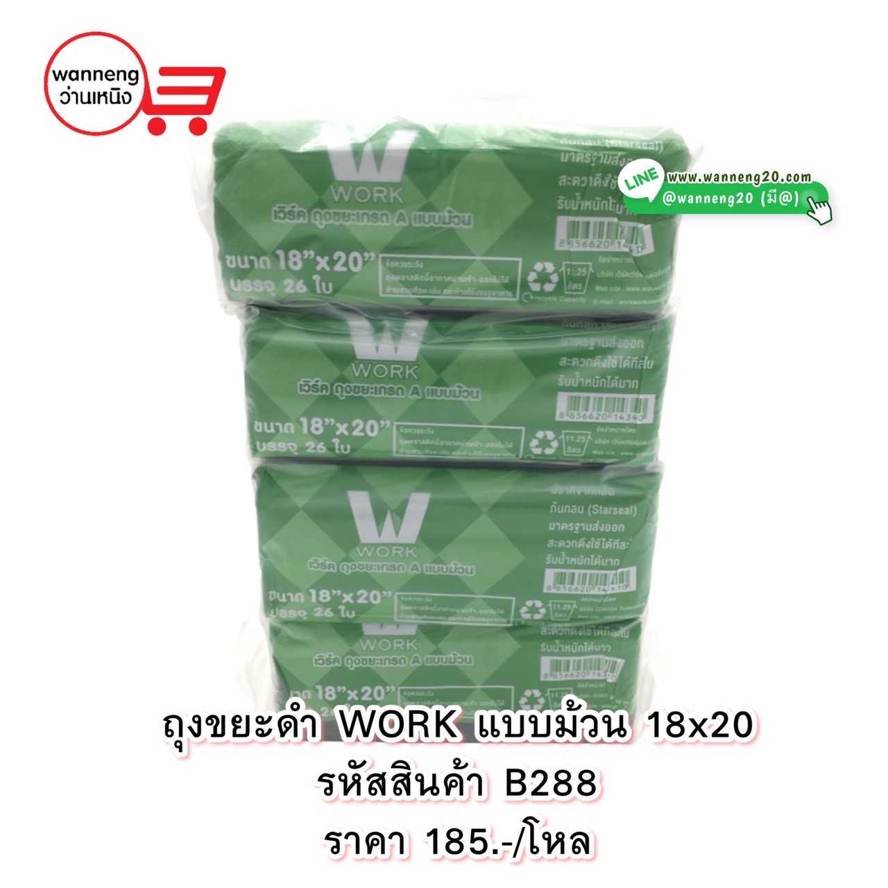 B288 ถุงขยะดำWORKแบบม้วน 18x20 1 โหล