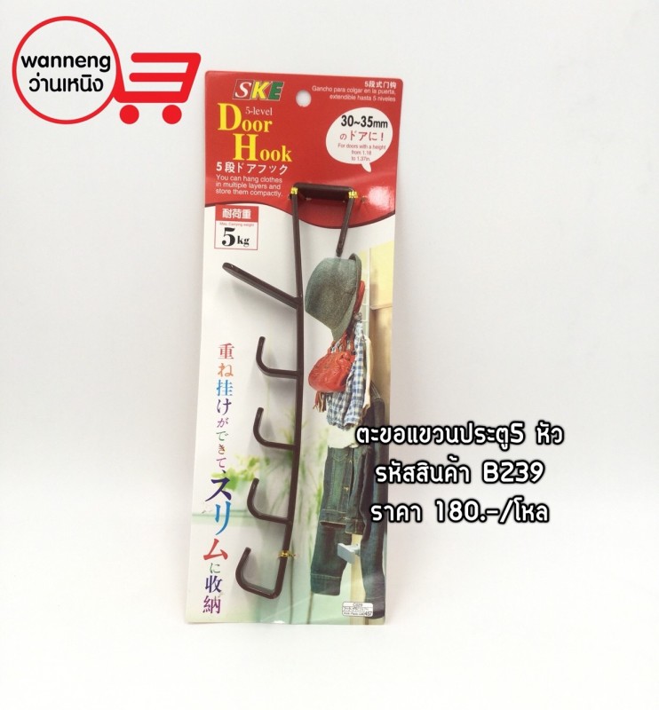 B239 ตะขอแขวนประตู 5 หัว 1 โหล