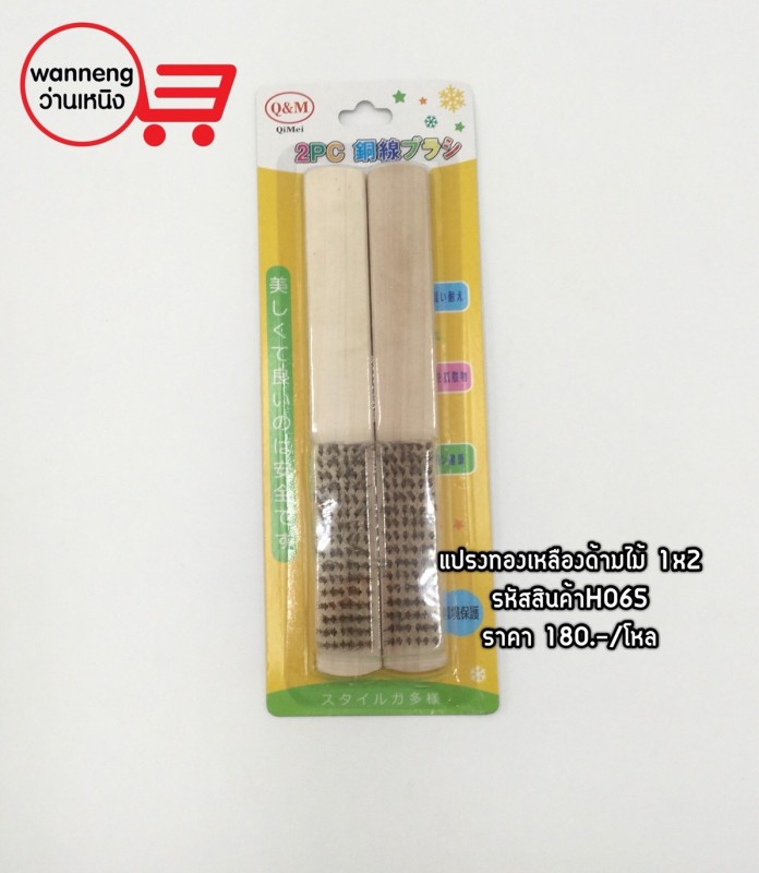 H065 แปรงทองเหลืองด้ามไม้1x2 1 โหล