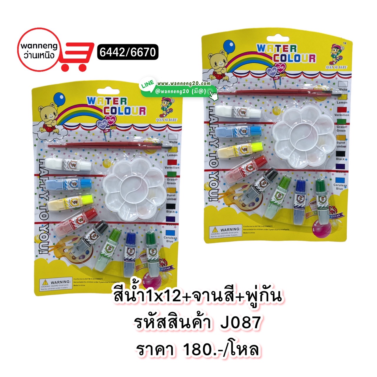 J087 สีน้ำ1x12+จานสี+พู่กัน 6442 1 โหล