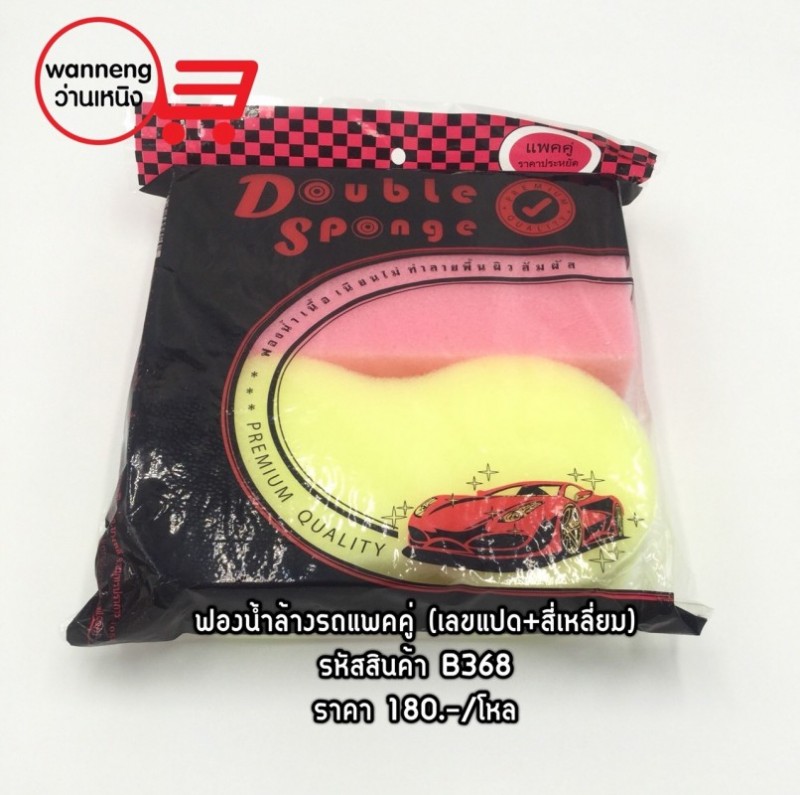 B368 ฟองน้ำล้างรถแพคคู่ (เลขแปด+สี่เหลี่ยม) 1 โหล