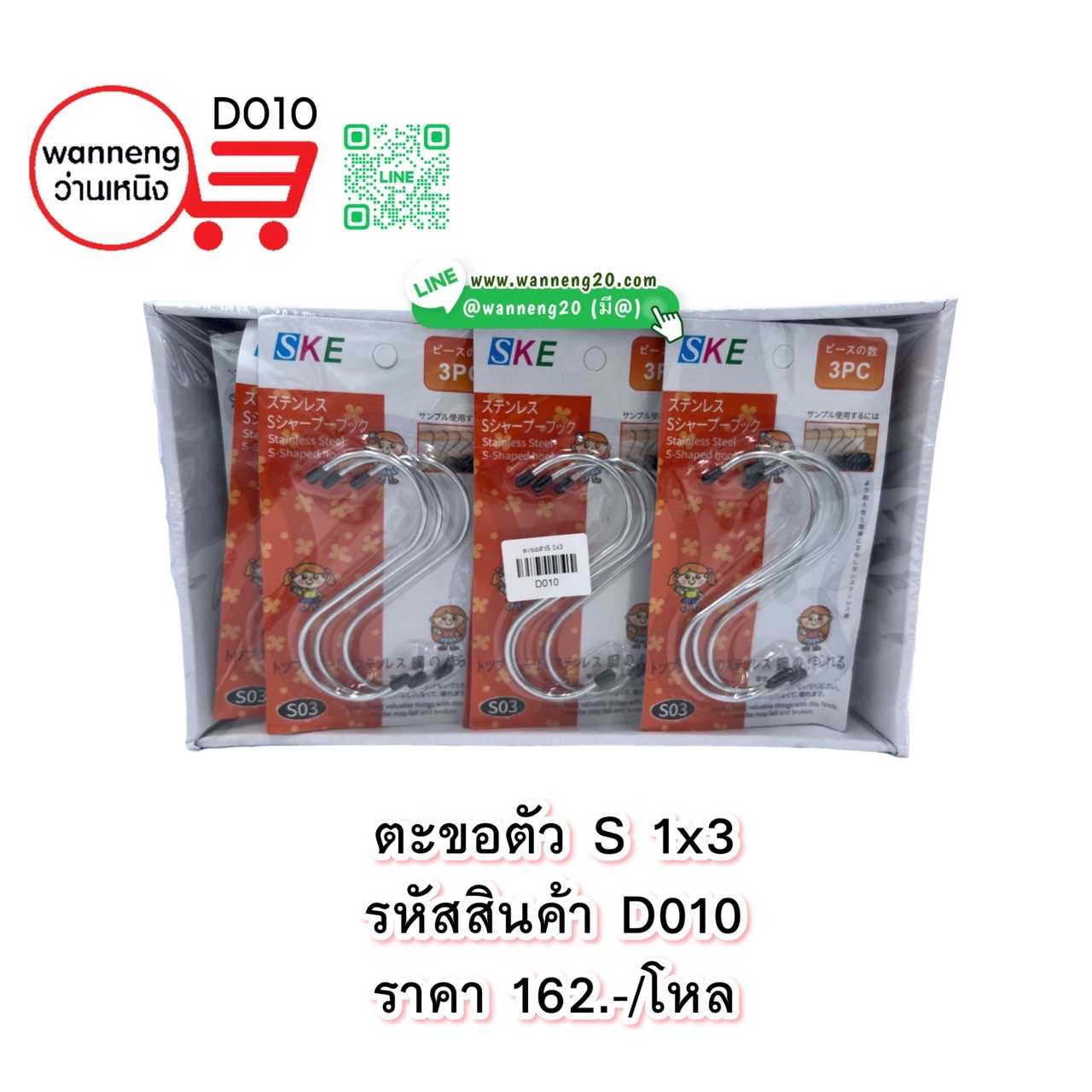 D010 ตะขอแขวนตัวS 1x3 1 โหล