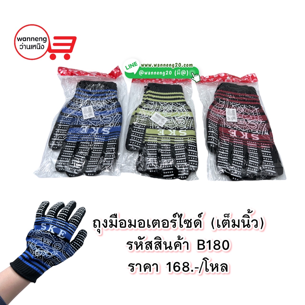 B180 ถุงมือมอเตอร์ไซด์ (เต็มนิ้ว) 1 โหล