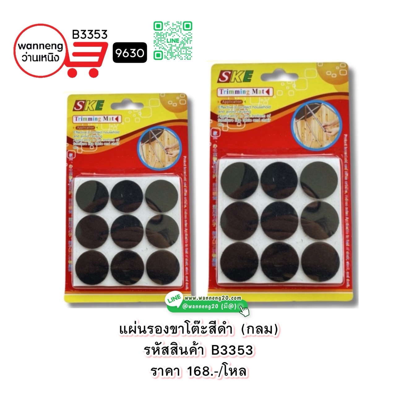 B3353 แผ่นรองขาโต๊ะสีดำ (กลมฉ 9630 1 โหล