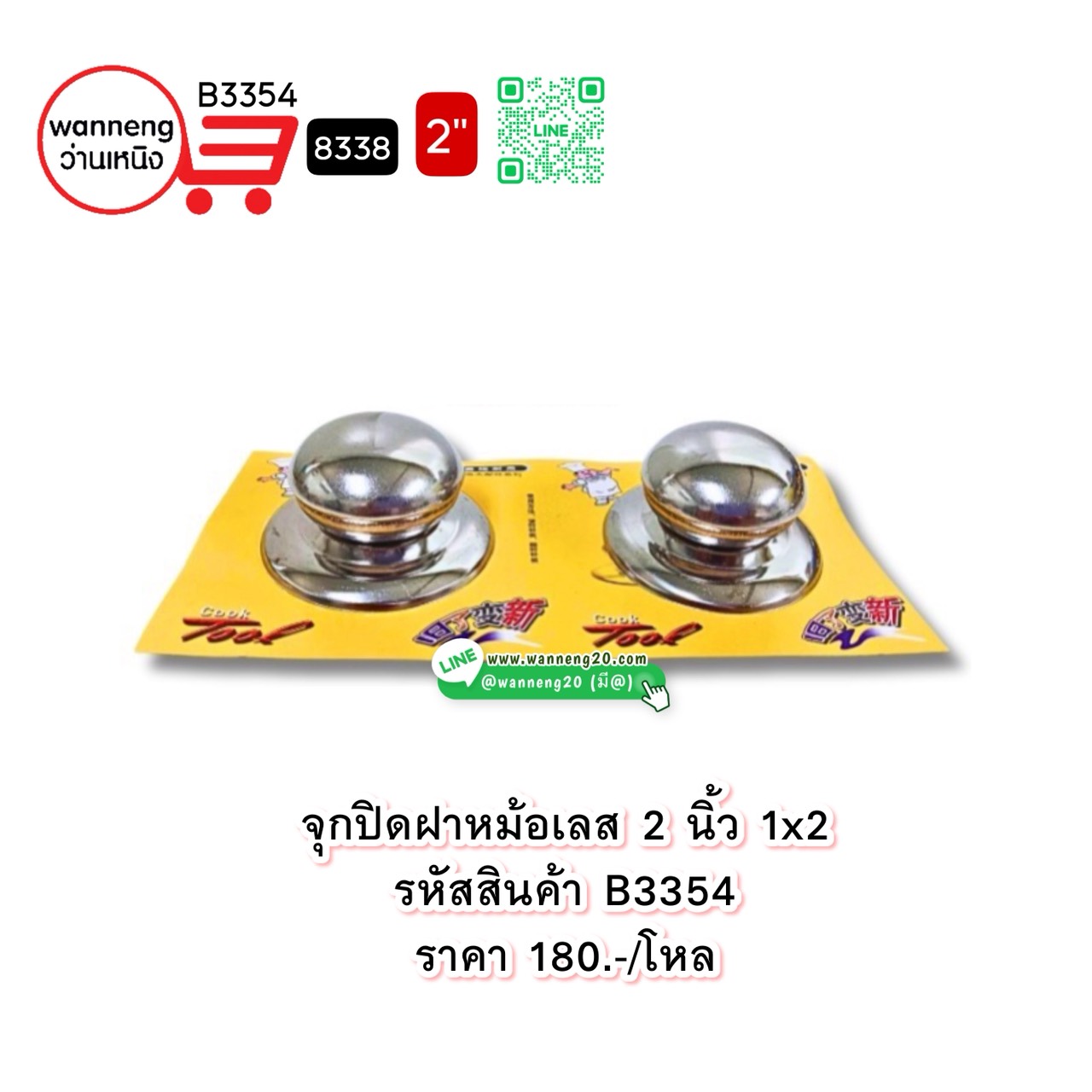 B3354 จุกปิดฝาหม้อเลส 2 นิ้ว 1x2 8338 1 โหล