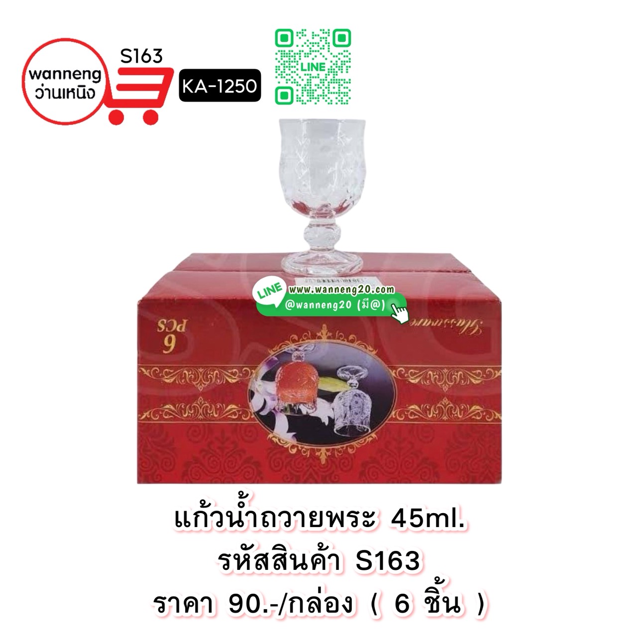 S163 แก้วถวายน้ำพระ 45ml. KA-1250 1 กล่อง 6 ชิ้น