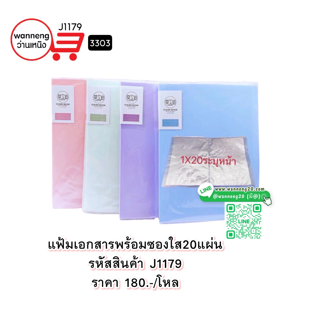 J1179 แฟ้มเอกสารพร้อมซองใส 20 แผ่น 3303 1 โหล