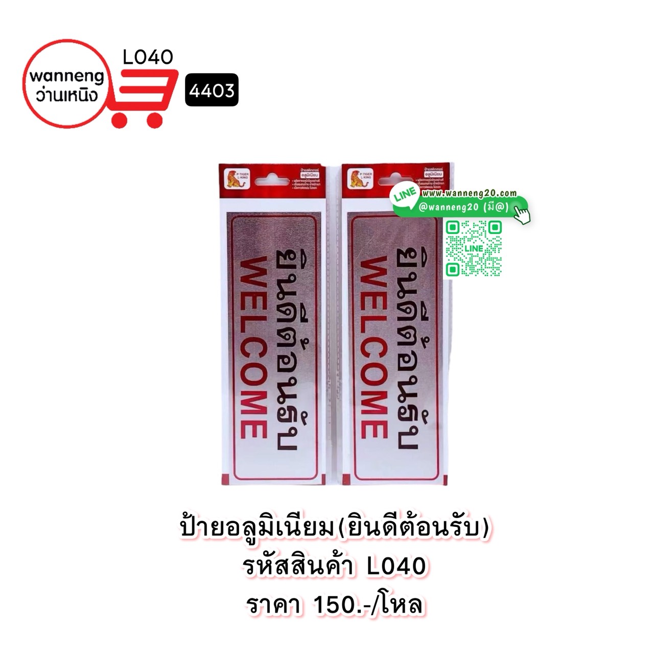 L040 ป้ายอลูมิเนียม (ยินดีต้อนรับ) 4403 1 โหล