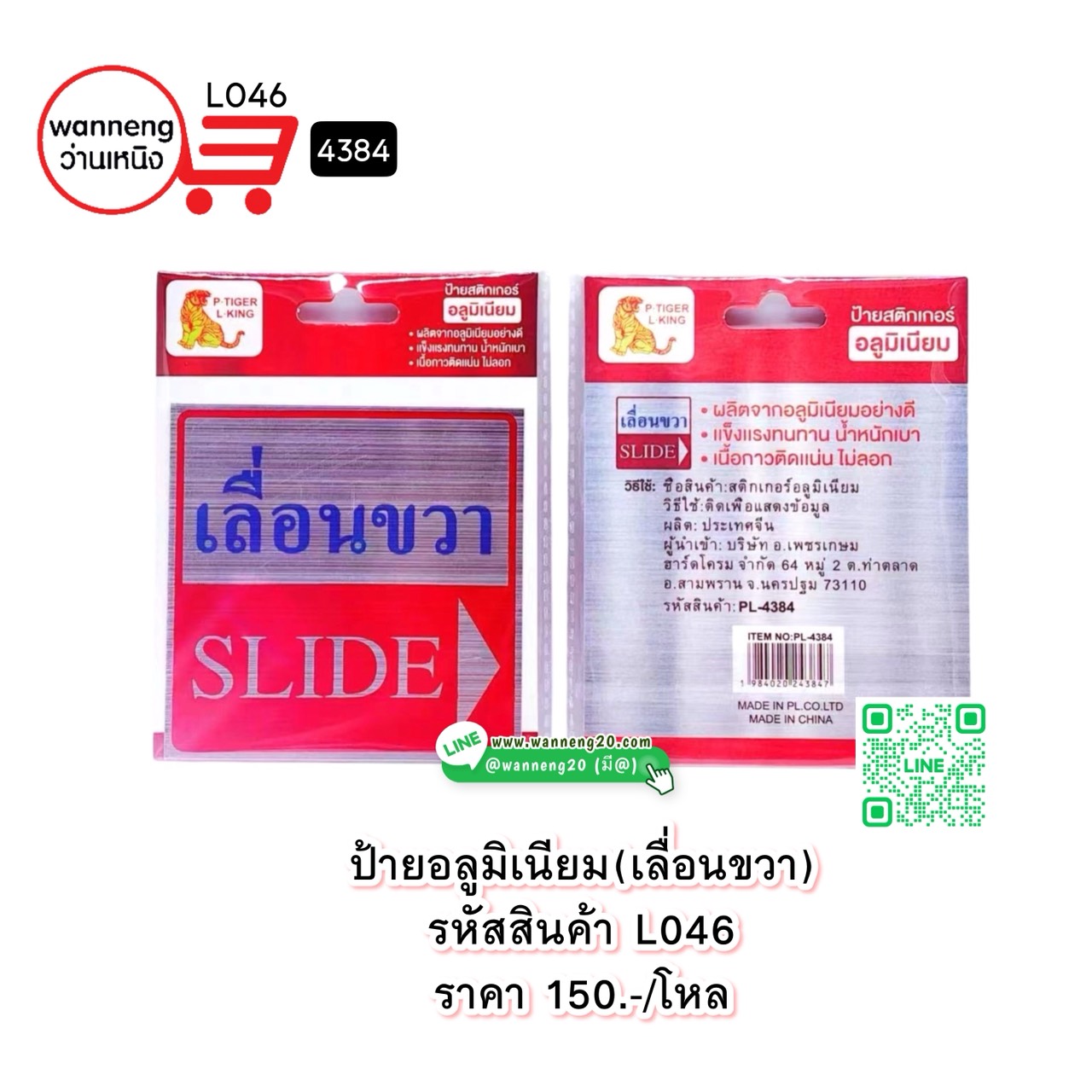 L046 ป้ายอลูมิเนียม(เลื่อนขวา) 4384 1 โหล