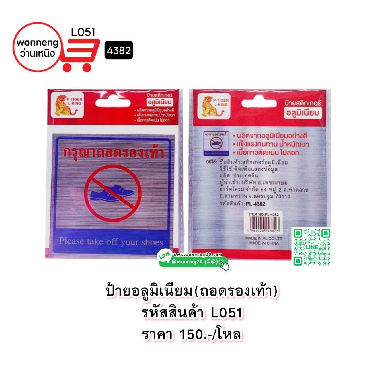 L051 ป้ายอลูมิเนียม(ถอดรองเท้า) 4382 1 โหล