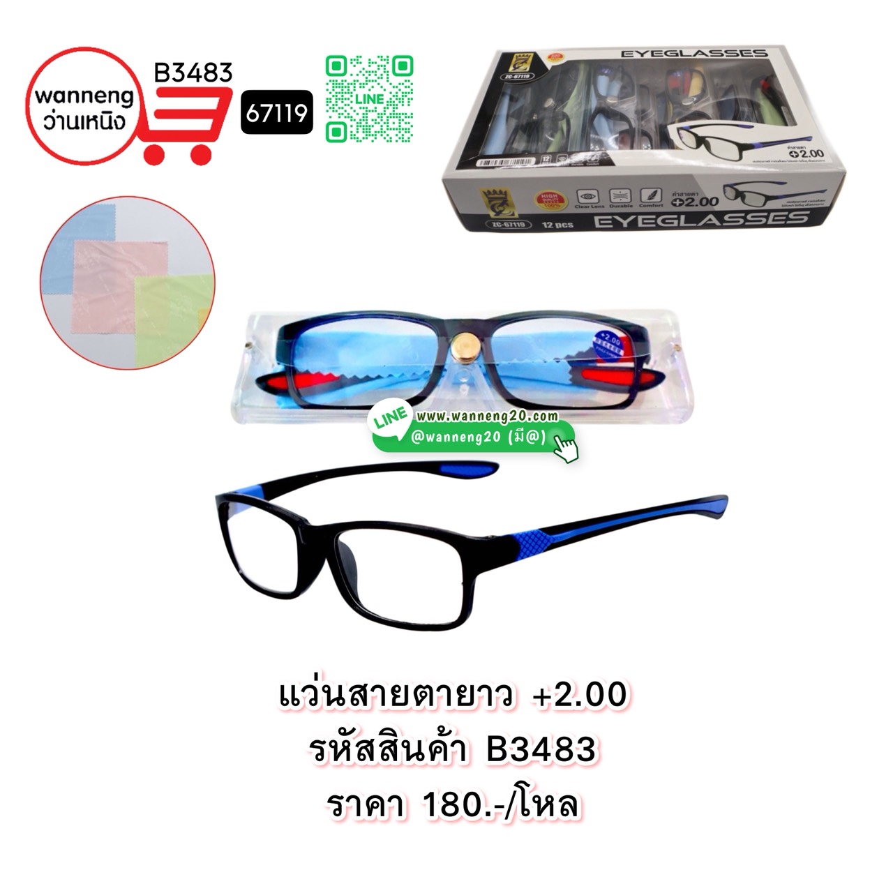 B3488 แว่นสายตายาว +1.00 67115 1 โหล